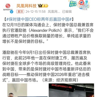 【保时捷中国CEO称两年后赢回中国,网友:夸口】看起来新总裁事理是“利润最大化”而非“销量最大化”。