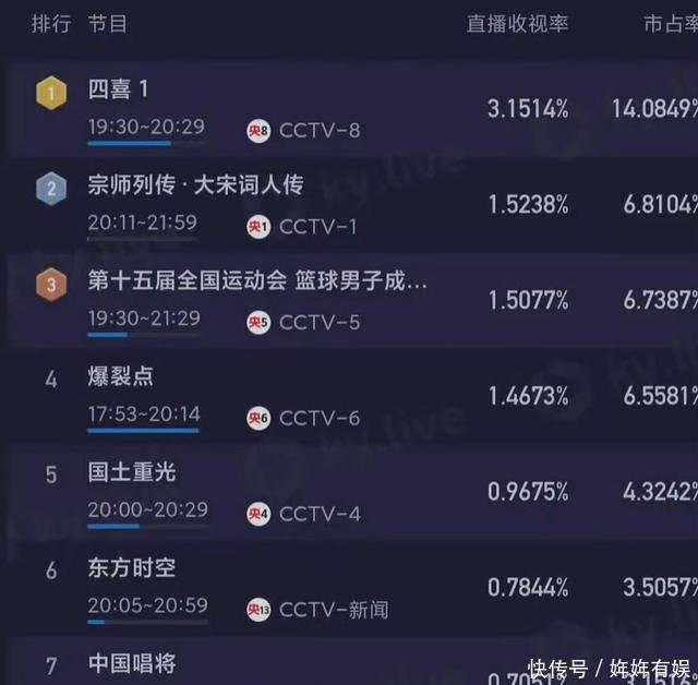 《四喜》莫得让人人失望,开播37分钟收视率破3%,创央视八套(CCTV-8)史上最快破3记录Top2,首日平均收视达2.5261%,稳居2025年央八收视榜首。