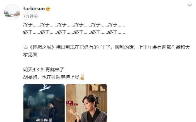 孙俪一连发出12个“终于”,欷歔谈:从《理思之城》开播于今,果决往时三年半时光。如果进展胜利,本年上半年便会有两部作品与宇宙碰头。未来银河电子娱乐(中国)官方网站,韩青这个脚色就要“登场”了,而胡曼黎,也在等着亮相呢。