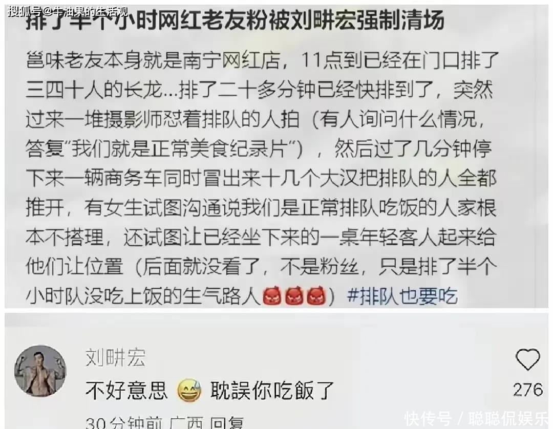 刘畊宏本东说念主还现身驳倒区,说不好原理贻误你吃饭了,证明了网友的说法,但是过后掉粉被吐槽,刘畊宏又改口说是被好多看干涉的粉丝围着,没方针才清东说念主,因为要拍摄。